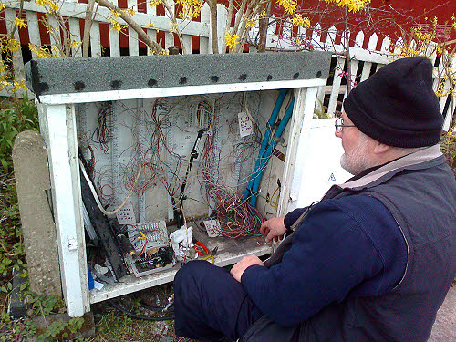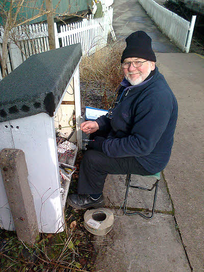 23 March : Paul, Peter and I were in for the morning. We had a weird fault reported in that our VOIP line had inexplicably turned into our main shop line. We did quite a bit of checking, particularly as the last time we were in, we had reterminated part of a distribution box. However it turned out not to be us but that the router was connecting its VOIP output to the shop line. There have been power failures over the last few days so we think that the router must do this when the power fails and that it had been unable to recover when the power came back on. If it does it again at least we know where to look.