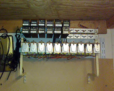 27 August : Paul and Peter came in to experiment with a webcam. The camera has provided a fairly low quality picture at Paul's home but they could not finish the job as they broke its aerial off. A new one will need to be obtained. 28 August : Rick went back to DP3A and got some jumpers in ready to reroute circuits from DP5 to DP3A. Martin and I spent some time with Jason showing him where our cables are in the area to be developed as an engine shed and accommodation block. We sorted out the abandoned electricity cable ends in DP3A and cut some of them off. We are just left with a cable that we suspect goes to the museum loft where it will presumably be cut off!. Peter cleared a noise fault on the BT line to the signal box. It turned out to be a dis in DP3A again. 30 August : Rick and Ray replaced all the connection strips in DP5F but this still left the junction from Parkend to Norchard slightly noisy. Ran out of time as we could only work the morning. To be continued. 31 August : I went in to fit a digital voltmeter at Norchard and decided to stay on and cable out the M wires for level 5. This then enabled metering on all local calls as level 8 had already been done. I checked all lines for correct metering and labelled all the meters as I proceeded. I found the line circuit for the wallphone outside the shop faulty and causing all the linefinders to be found in turn and lock up and leaving the control set lamp alight. I changed out the line circuit. Perhaps this will clear up some of the A1 unit lockups we have been having. I noted all the meter readings so that we can monitor the number of calls made from each line. With all of the junction calls already being counted, we will know the full use being made of the exchange. Traffic record spreadsheets have been added to this site. September 2013 4 September : Rick and Ray spent the day walking to Whitecroft checking for corrosion and noise on the junctions. Eventually they went to Parkend and found that the junctions were finally clear of noise. We hope the noise does not return when the weather becomes damp. Peter and I tried to find out why our laptop would connect to the router wirelessly but not the internet. It worked fine when moved and connected via an ethernet cable. We never did solve our problem but got round it by using the BT open zone facility which did work. Later we went to Middle Forge and the Town Crossing to do the maintenance checks on the phones and cabinets there. We do need to go back to the Town Crossing and do a couple of small jobs. We heard that there may be a request for cable pairs at Lydney Junction from S and T and that they may ask for a couple of signal post phones to be provided.