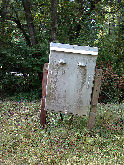 25 May : Peter had bought a regenerator on eBay and I went in to pick it up from the office to include it in the auto auto relay set I am building. Very disappointing as it is very very second hand and so worn that at present I cannot get it to work. While there the demon strode from his lair and summoned me to Parkend where the phone installed in the ground frame hut on Wednesday was not working. I narrowed it down to an exchange problem and found that the line circuit CO relay had some paper stuck in the springs. Removing it made all well again. Bob Hawker promises me that the phone cabinet for Parkend platform will be available for next Wednesday. I think the moral here is "don't go anywhere near the railway unless you are going to work". 29 May : Only Rick and I were in on telecoms today. Rick went to change the dial at Whitecroft platform as it was needing help in returning. I fitted a wooden baseboard in the cabinet for Parkend platform. We sorted out a suitable working telephone for the cabinet. After lunch we went to Parkend and fitted the cabinet and phone. As soon as we had drilled the holes in the building for the cabinet we were told it was in the wrong place. But hey! That's usual for the DFR. We completed the cabinet mounting and got the phone working but need to go back and tidy some of the temporary connections we made. We ran out of time.
