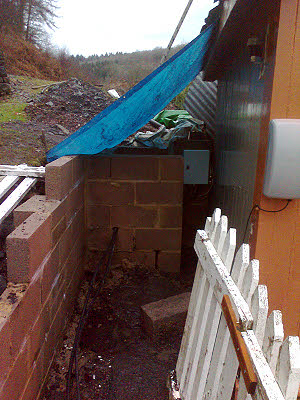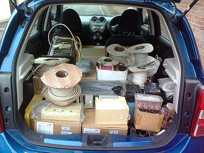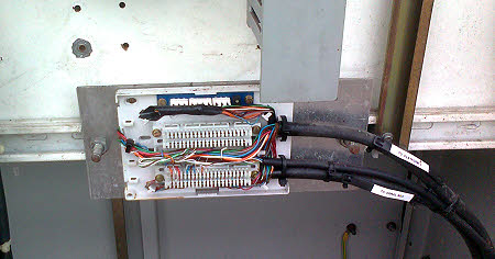 5 February : Terrible weather today. I was the only telecoms guy in. I made a start by shifting an existing jumper that had been badly run (see the blue/yellow jumper in the pic above) to the protector we had completed on Saturday. At least that part of the frame now looks pretty tidy. However I decided that jumper running on my own was too tedious so I packed in and picked up Jean and went home.