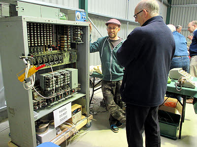 19 February : Rick and Ray repaired a faulty switch in Norchard exchange and changed out a faulty phone in the workshop. 22 February : Paul, Ian and I spent the day getting the shots for episode 2 of the DFR Telecoms videos. Episode 1 will be shot later. Peter is working on finding phones etc for sale at the next THG swapmeet in April. I came back to pick up Jean and the hot dogs for the lineside gang, after which we all went to Kaplan's for lunch. After lunch Jean's hands were used to show dialling and James in the shop had the only speaking part when he answered a phone for us. Now it's up to Paul to produce a rough cut to see what the video could look like. 26 February : Rick, Ray and Peter got a clock put through and working in the 9681 coach. We also received an order for a phone and clock in the new signing on hut. I filled up my boot with scrap and took it to Bendall's. That helps the Telecom Fund. Electrical Group : During February the team has focused on implementing and supporting the rework concerned with the revised electricity supply to: