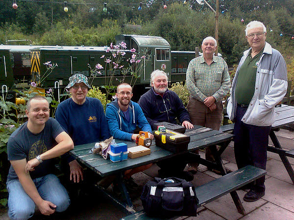 29 August : Practically a Group Lunch with Martin and Cynthia, Charles, Peter and his mother, Rick and Janet, Ray and June, Ian, Jean and myself going for the Pensioner's Special at the Fountain. Twelve in all. Very good value for money. Poor Paul was still at work in Bristol! Still, Kaplan's beckons for tomorrow, we have booked table space for up to a dozen. 30 August : An excellent day's work. Paul, Ian, Rick, Ray and I were in from the Telecoms Group and we had the assistance of Charles and Martin from the electricians. We spent the morning getting the new cafe cables into the duct as far as the office building. Then we went to an excellent lunch at Kaplan's picking up Jean, Cynthia and June on the way. During the afternoon, Paul, Ian, Rick, Charles and I got the cables into the loft and through to their destinations. We tidied the external cable run before finishing for the day. A really good day's work. Thanks lads. September 2014 3 September : Rick terminated the new cafe cable in DP3A, Peter terminated the cable in the cafe and I jumpered up a new line. We ended with a working phone in the cafe much to the delight of Lynne who will find a use for it this weekend when we have an ale and beer train. Ray did some odd jobs helping out where he could be of use. It will be a rearrangement of the clock circuits next week plus possibly the PA circuit. However morale has taken a dip in our normally cheerful bunch following the news that the railway may well not take our advice to use BT for the new wi fi line proposed for the cafe. Perhaps the fish and chips train on Friday and a group visit to the Severn Valley line later in the month will help.