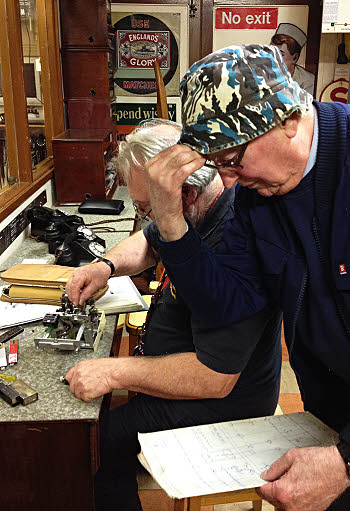 26 September : Ray went in with Rick to continue with dropping out linefinders on 880. They soon found the LF multiple to be all OK and so returned their thoughts to the L K and P relays but could find no fault with them. However their line of thought was considerably altered when it was discovered that extn 571 exhibited the same drop out of LF as 880. This was on level 3 outlet 1 so their thoughts turned to whether it could it be the LF H relays not operating fast enough on the first rotary step. They could not see any common factor to cause this on several LFs and both control sets and allotters. Just as it was time to go home they put a " good" LF from shelf B into a position on the C shelf which always failed, and it failed. However when returned to its original position on the B shelf it failed every time which it has not done before. At this point of disarray they sounded the retreat and will return to the fray another day. 27 September : Ian set to terminating the cable to the shop alarm display KLU at both ends. I went to install the modified lo volt alarm relay set at Lydney Junction Signal Box and tested the STARS circuit to Norchard with Paul. It works. Paul recorded the tones the ringer produces. Peter came in briefly with a friend. Ian and I came for lunch at Jean's. After lunch we set to checking the extension of the alarms to the shop. One jumper had to be moved, otherwise all was well. James in the shop is now familiar with the KLU operation. 27 September Alarm Call : Difficult to believe, but less than thirty minutes after getting home, James is on the phone announcing an alarm call from Norchard Signal Box. I went back to the railway to find a genuine alarm. I checked the signal box equipment for it to show as a low voltage alarm. I then measured the four 12 volt batteries to find that two of them were under voltage even though the trickle charge lamps were glowing quite brightly. They will need to be replaced, hopefully on Wednesday next. 29 September : The new low voltage alarm arrangements for Lydney Junction Signal Boxhave been added to this website. October 2014 1 October : On reaching the railway, I was not even able to sign in before Lynne grabbed me with news that there was trouble at the signal box. I found the trip out serving the 110 volt transformer. It would not reset. I left a message with David Collins but was able to contact Peter Wood. He talked me through changing over to the standby transformer, which also brought the trip out. However taking the load fuses out allowed either transformer to work. By then the rest of the gang were available and Charles and Martin checked the socket for any problems. None found. However in trying it all again, suddenly the standby transformer worked connected to the load. We hastily beat a retreat while all was working. By then the time had gone on and the signalman had started to work the train using a pilotman. Later I recalled that this had been a problem in the past and a request for an uprated supply had been requested by S&T, but that as the failure had not recurred, the job had been removed from the list.