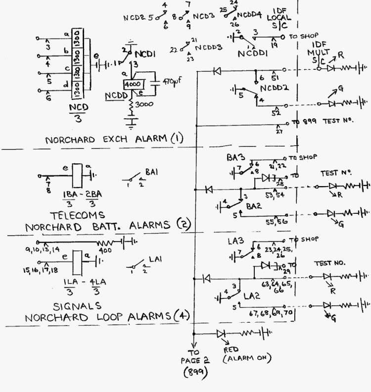 Local DC Alarm Circuits Alarm circuits in the Norchard exchange area will be sent to the alarm reception relay set as DC signals ie :